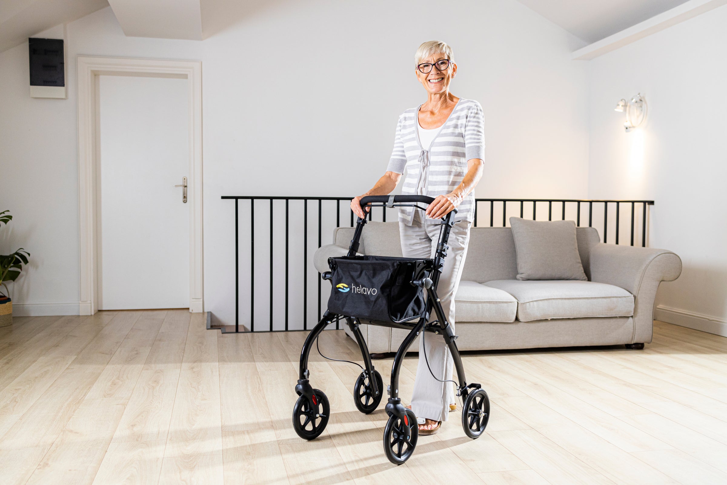 3 Räder Rollator Schmal mit Doppelten Vorderrädern H1080 Schwarz