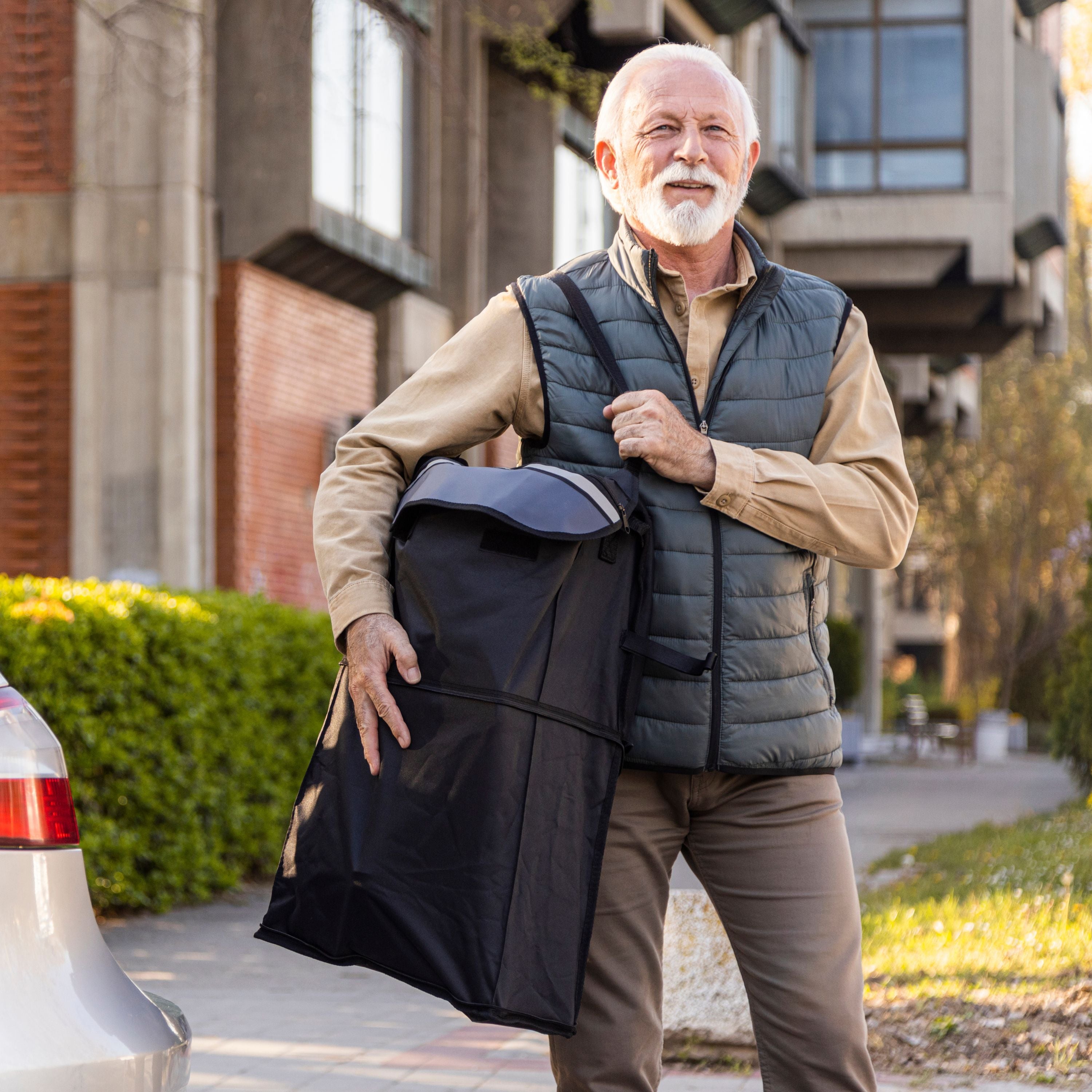 Für noch mehr Flexibilität beim Reisen wird der Rollator mit einer praktischen Multifunktionstasche geliefert, die gleichzeitig als Schutzhülle dient. Ob auf Reisen, beim Arzttermin oder beim Familienausflug – die Tasche hält den Rollator sauber, geschützt und stets einsatzbereit. Die Montage erfolgt schnell und werkzeugfrei, unterstützt durch ein anschauliches Schritt-für-Schritt-Video. Mit einer Garantie von 2 Jahren, die auf 3 Jahre verlängert werden kann, bietet dieser Rollator langanhaltenden Komfort, Mobilität und Sicherheit.