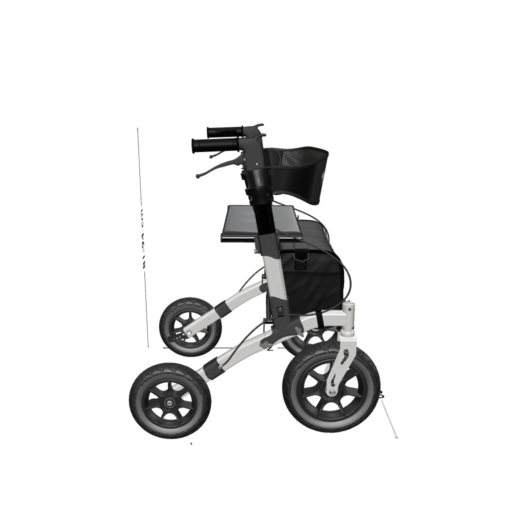 Dieser Gelände-Rollator vereint Robustheit, Komfort und praktische Funktionalität in einem vielseitigen Design. Mit pannensicheren Vollgummireifen, einem leichten, faltbaren Rahmen und einer stabilen Aluminiumkonstruktion ist er für den täglichen Einsatz auf unterschiedlichsten Untergründen ausgelegt – und dabei einfach zu manövrieren und zu transportieren.