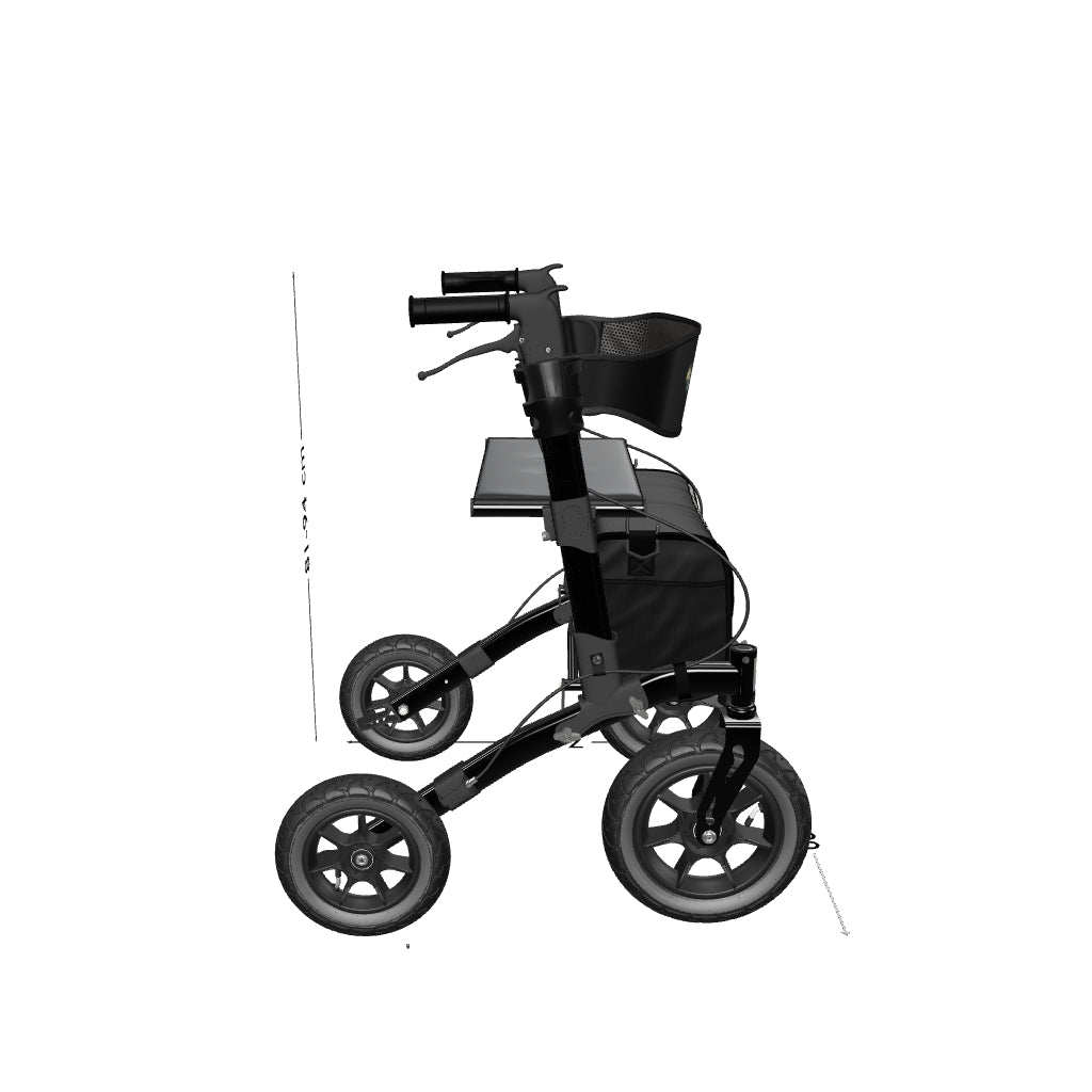 Dieser Outdoor-Rollator wurde für Komfort, Stabilität und einfache Nutzung entwickelt. Die luftgefüllten Reifen sorgen auf Gras, Schotter, Feldwegen und unebenen Gehwegen für sanftes Fahrverhalten und eine effektive Stoßdämpfung, während der leichte, aber robuste Rahmen zuverlässige Leistung in jeder Umgebung gewährleistet. Der bequeme Sitz mit extra gepolsterter Rückenlehne bietet Ihnen unterwegs jederzeit eine angenehme Ruhemöglichkeit, besonders bei längeren Ausflügen.
